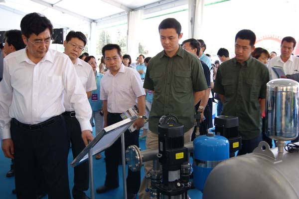 由國家發(fā)改委、節(jié)能中心、北京市政府聯(lián)合舉辦的中國北京國際節(jié)能展于2012/06/10 在京舉行,熊貓集團(tuán)作為國內(nèi)唯一一家供水設(shè)備制造商受邀參展。作為展會(huì)節(jié)能重點(diǎn)企業(yè),北京市長郭金龍等領(lǐng)導(dǎo)到熊貓產(chǎn)品展示臺(tái)前仔細(xì)詢問企業(yè)發(fā)展和產(chǎn)品節(jié)能 情況,并在展臺(tái)前留影。